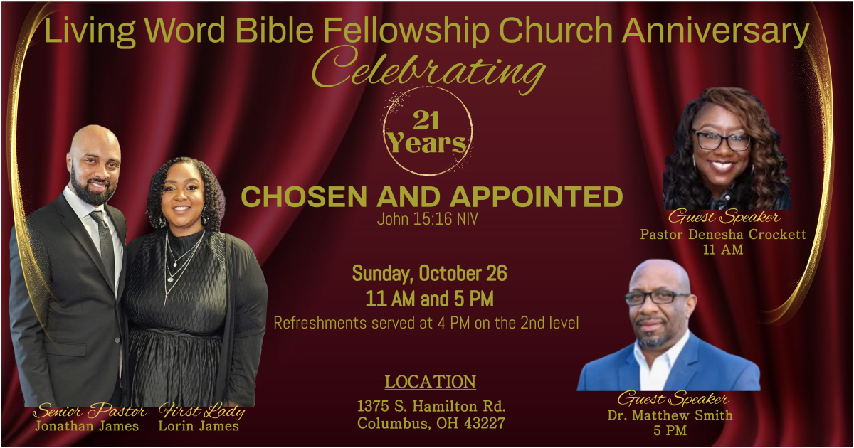 Please join us at Living Word Bible Fellowship as we celebrate 21 years in ministry!